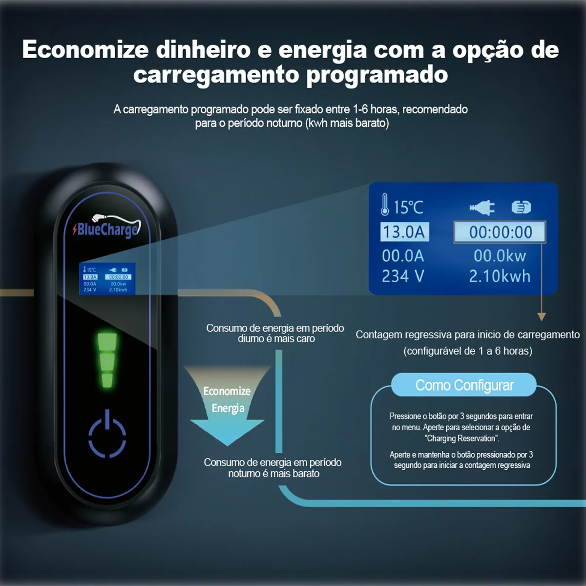 Carregador Bluecharge portátil Veículos Elétricos Padrão Nacional (Tipo 2)