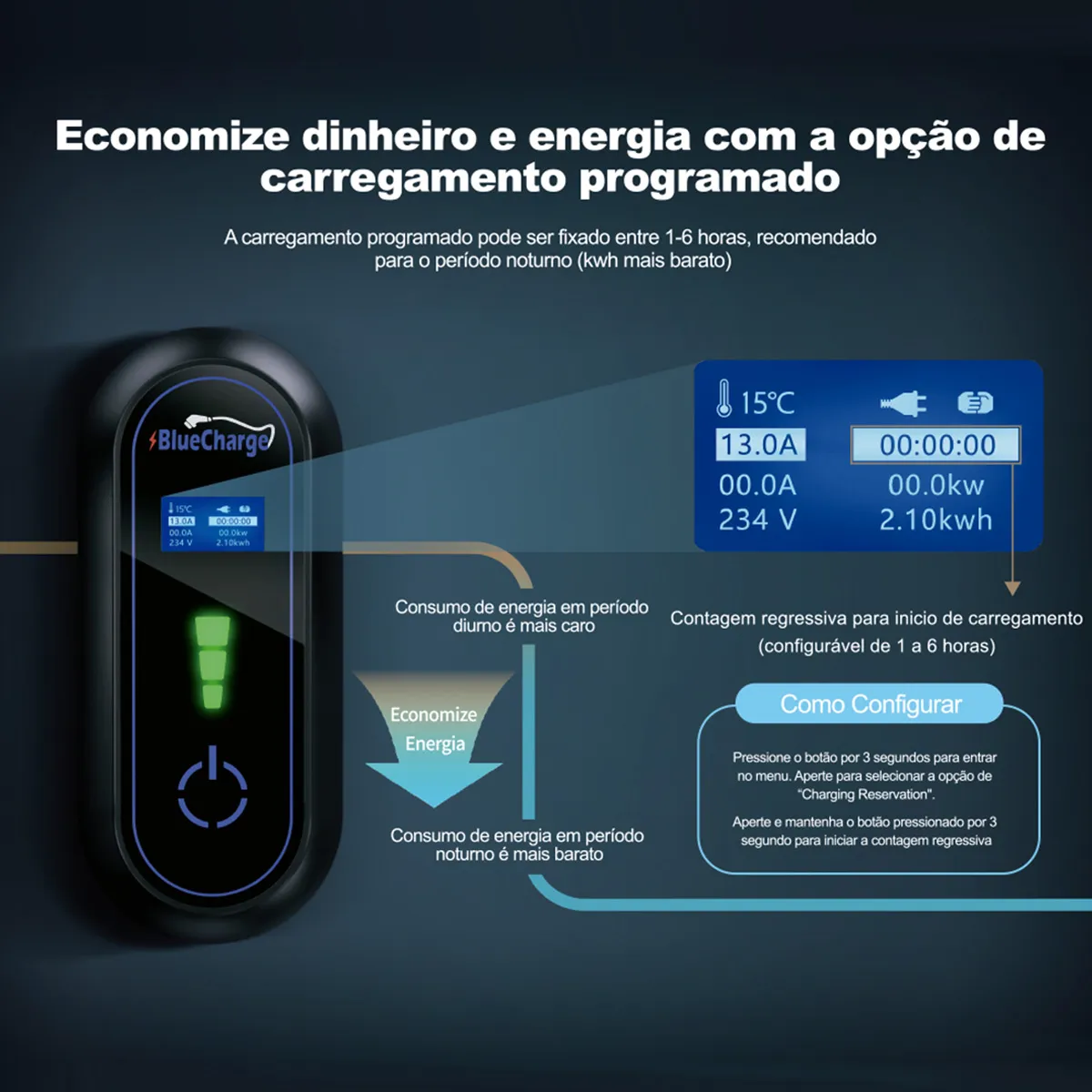 Fácil de instalar o carregador Bluecharge, pode ser instalado em residências, condomínios, casa na praia e afins.