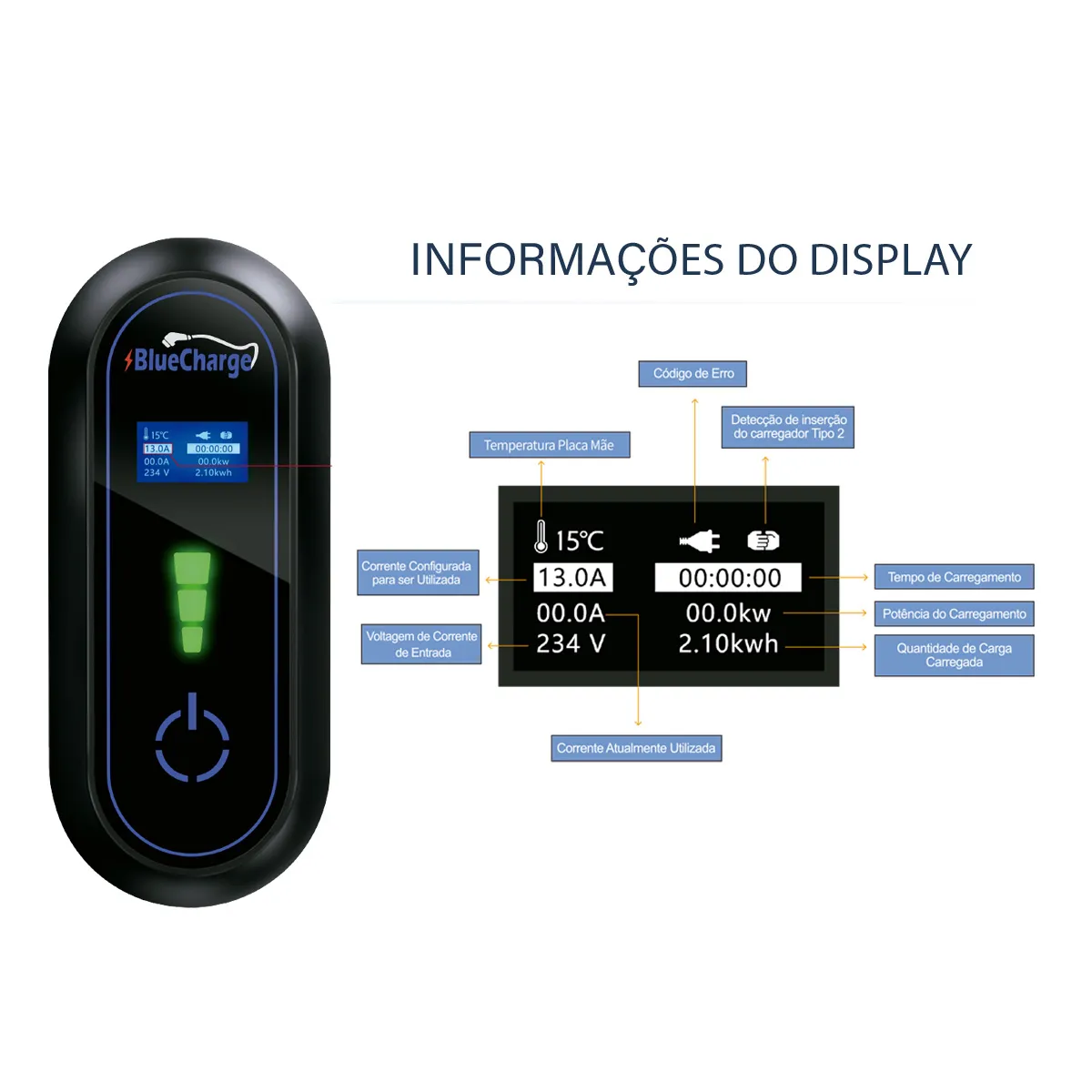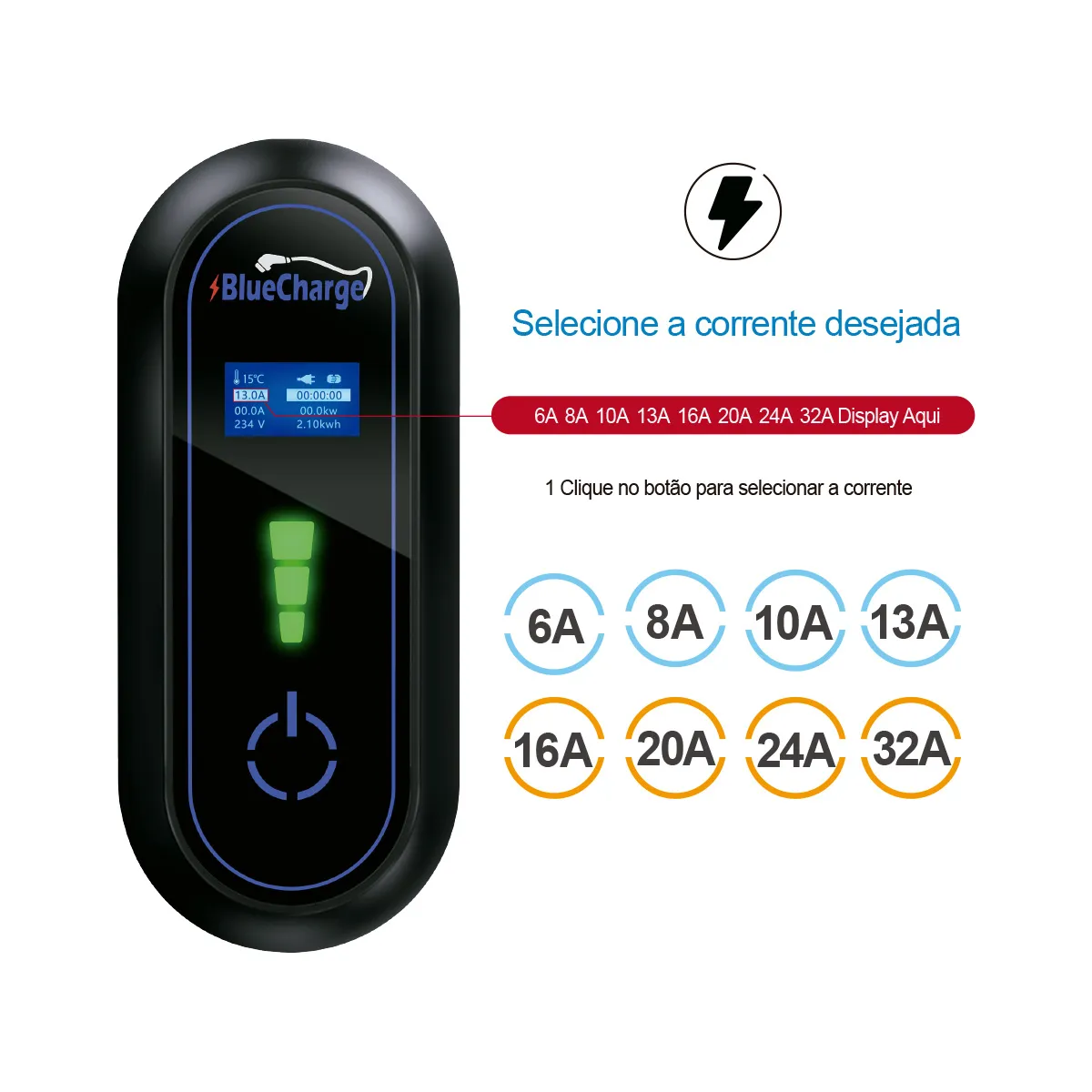 – Carregador Bluecharge – 7,4 kW – c/ cabo T2